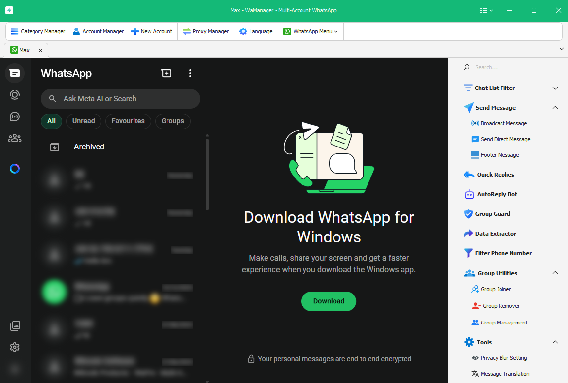 The ultimate software for managing multiple WhatsApp accounts with powerful automation tools.